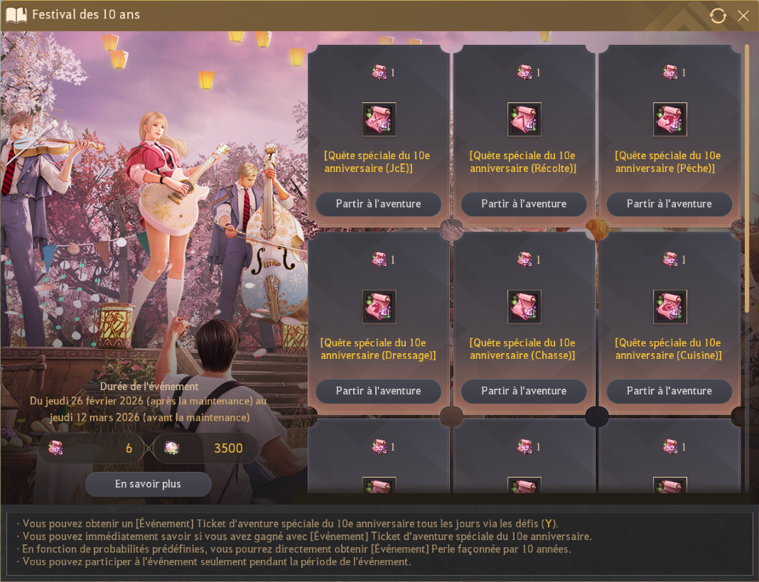 - [Événement] [🎉10 Ans 🎉] Collectez les Sceaux de l’anniversaire - [Événement] Perle façonnée par 10 années 26 févr. 2026 (UTC)