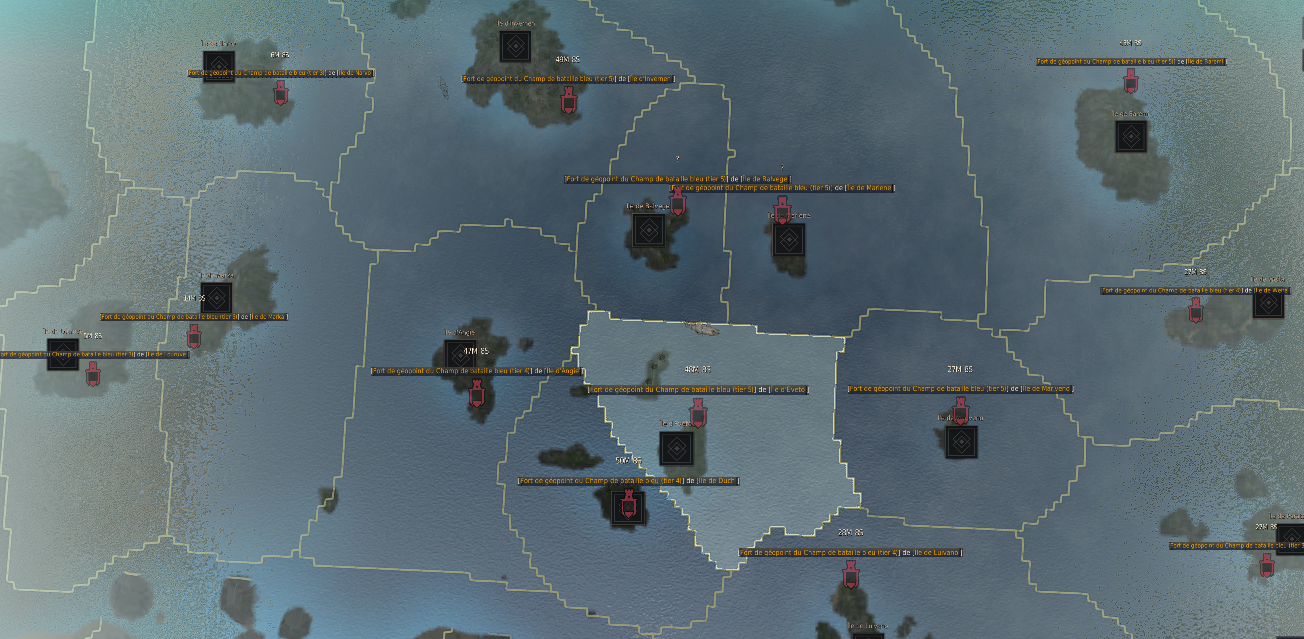 - En fonction du nombre de Guildes participantes, les Forts du Champ de bataille bleu suivants seront créés sur les îles ci-dessous.