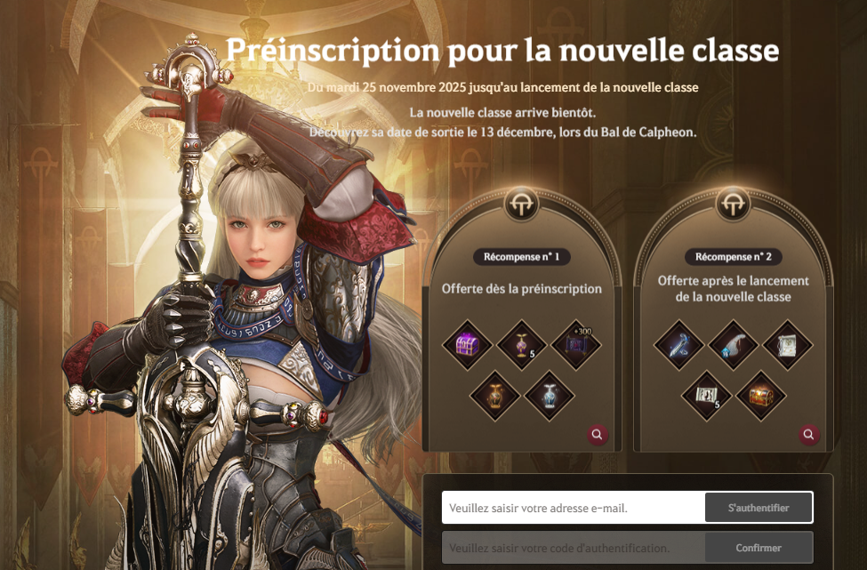 Période de préinscription : Du mardi 25 novembre 2025 à 3h30 (UTC) à la date de sortie de la nouvelle classe