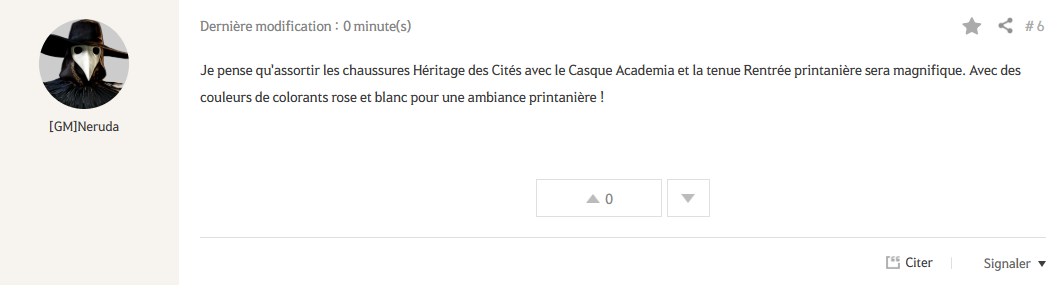 ② Partagez avec nous dans les commentaires les pièces de la tenue d'Héritage des Cités que vous porterez, les autres tenues avec lesquelles vous comptez les combiner, ainsi que vos choix de couleurs de colorants.
