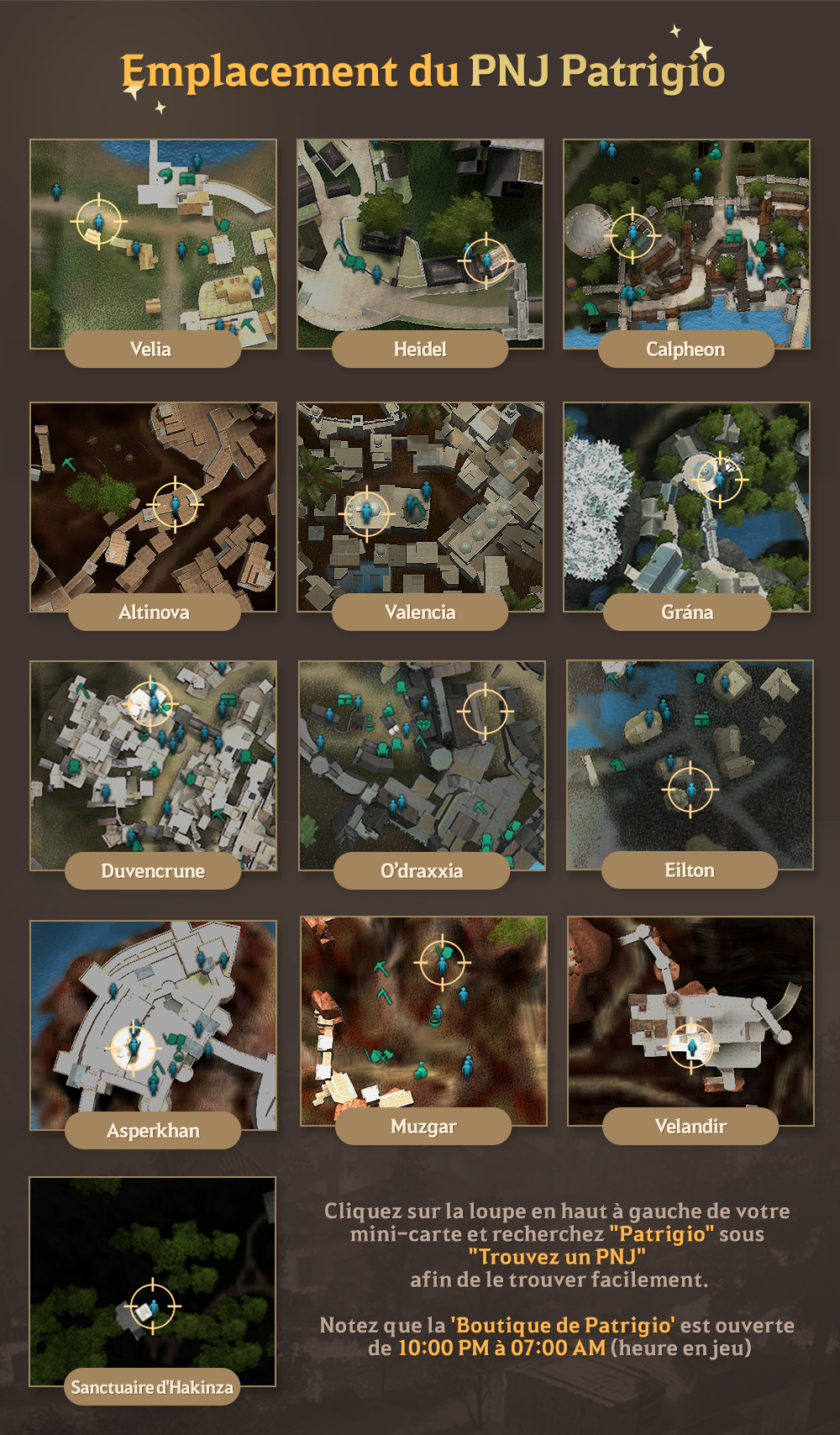 Achetez des objets à un prix allant du prix de base au prix maximum auprès du PNJ Patrigio.