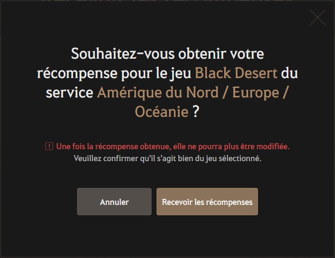 Assurez-vous que le jeu et la région sélectionnés sont corrects, puis cliquez sur [Récupérer les récompenses].